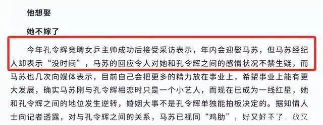 同时也不明白,名声响彻全世界的孔令辉,为什么要找一个娱乐圈的女明星成为自己的女友。 难道真的不害怕会被另外一半给拖后腿吗? 甚至还有各种各样的阴谋论出现在了马苏的身上, 觉得她就是想利用世界冠军的光环帮助自己在娱乐圈站稳脚跟。
